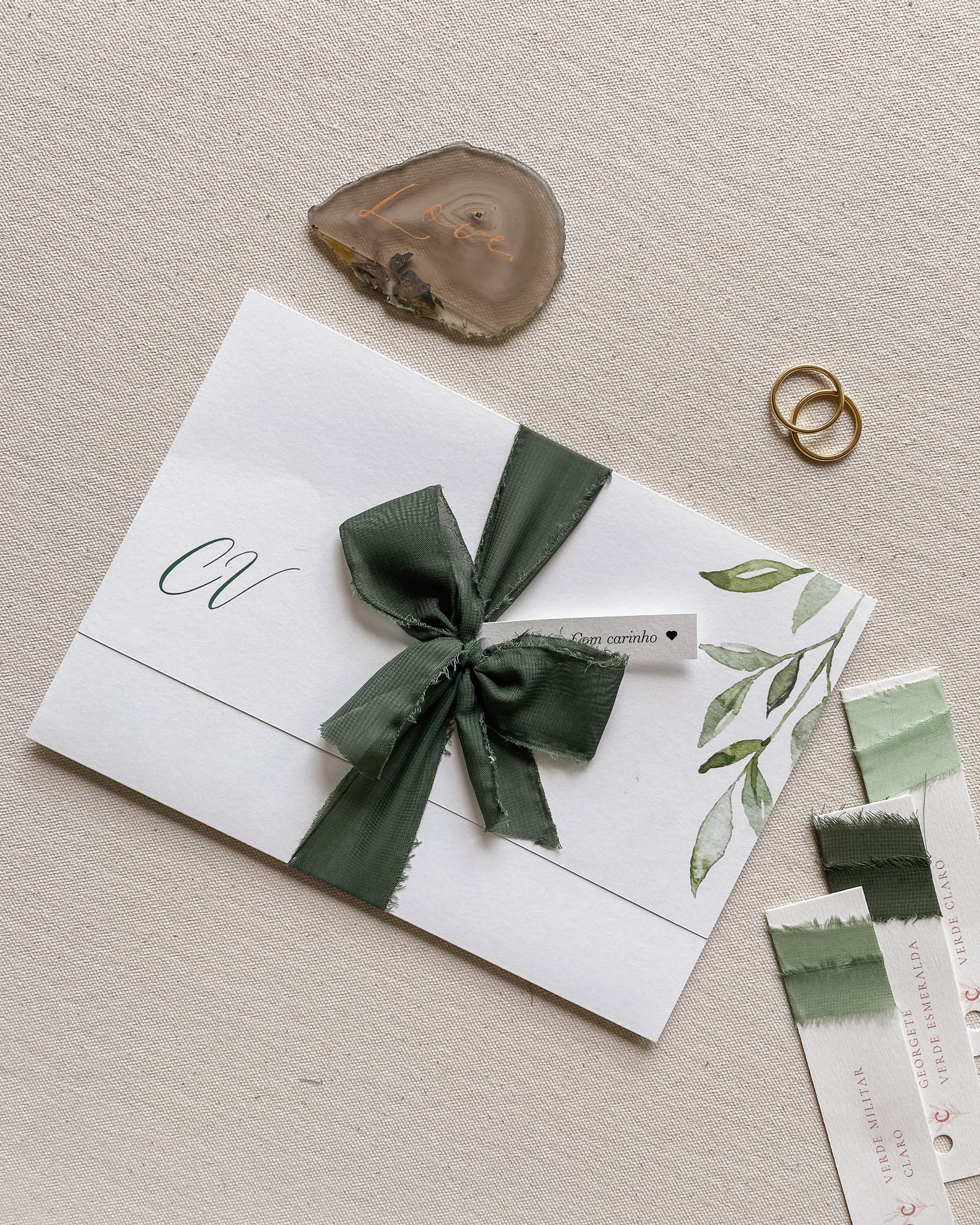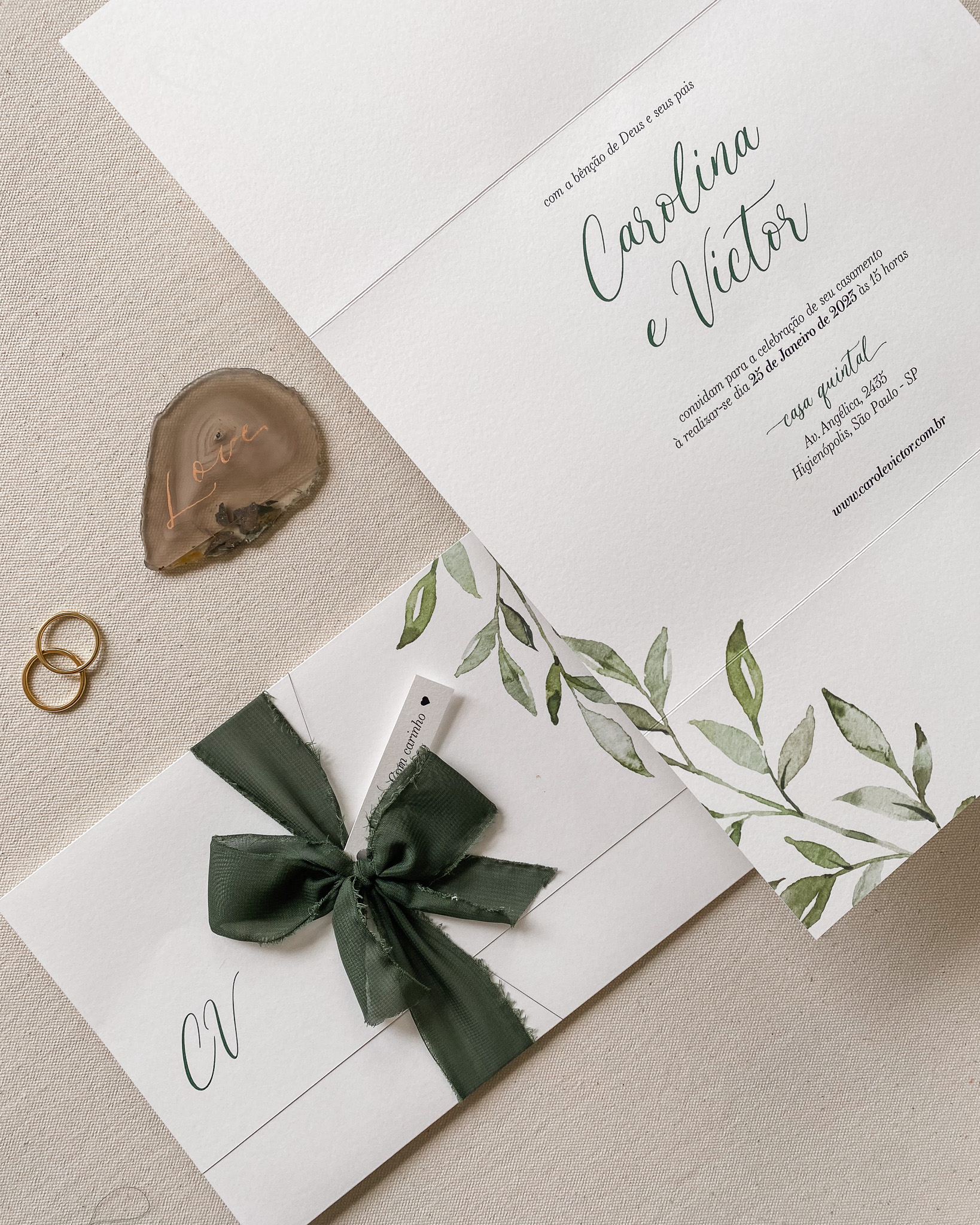 • Curadoria de identidade visual com florais e fontes do nosso catálogo