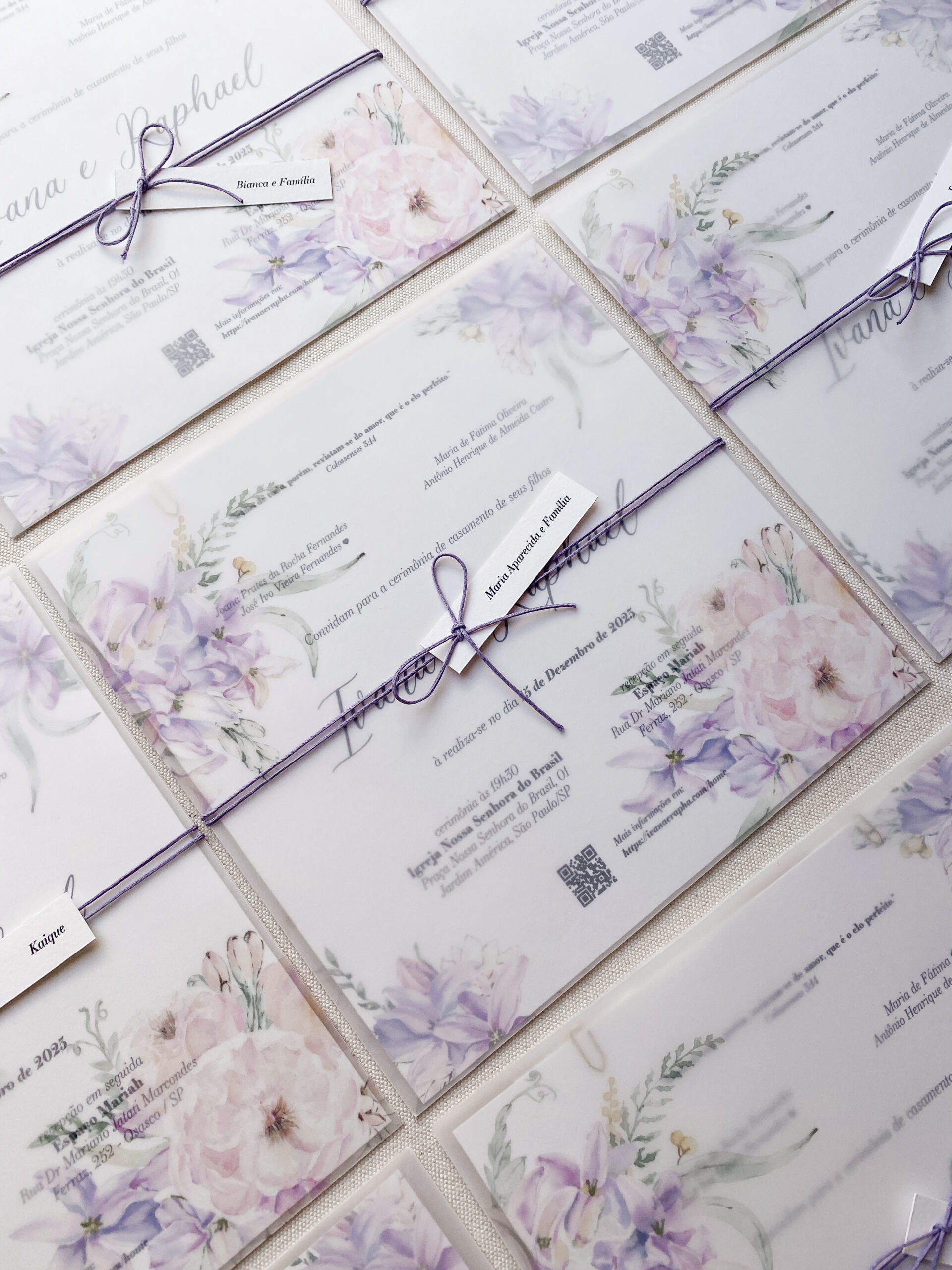 • Convites montados e embalados individualmente