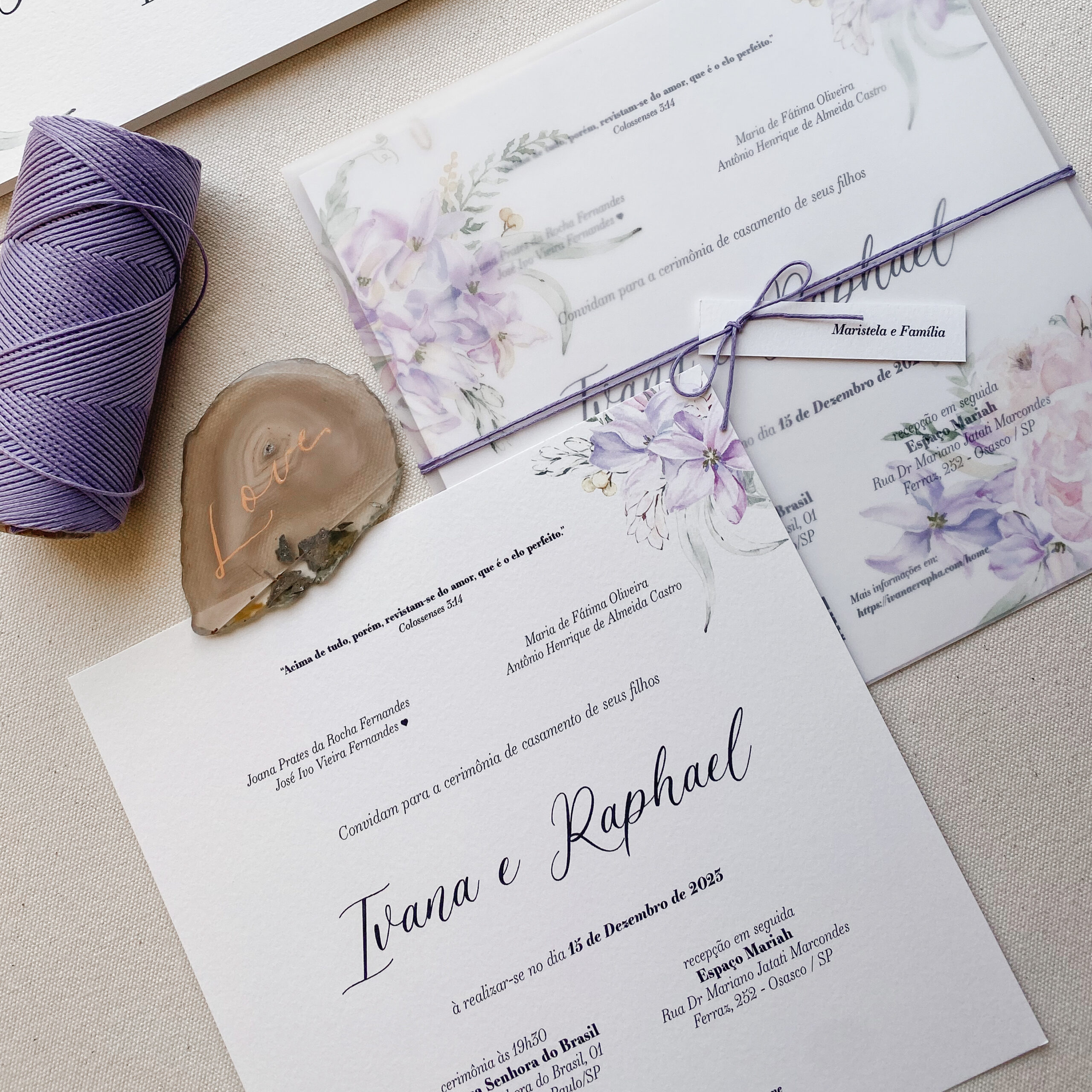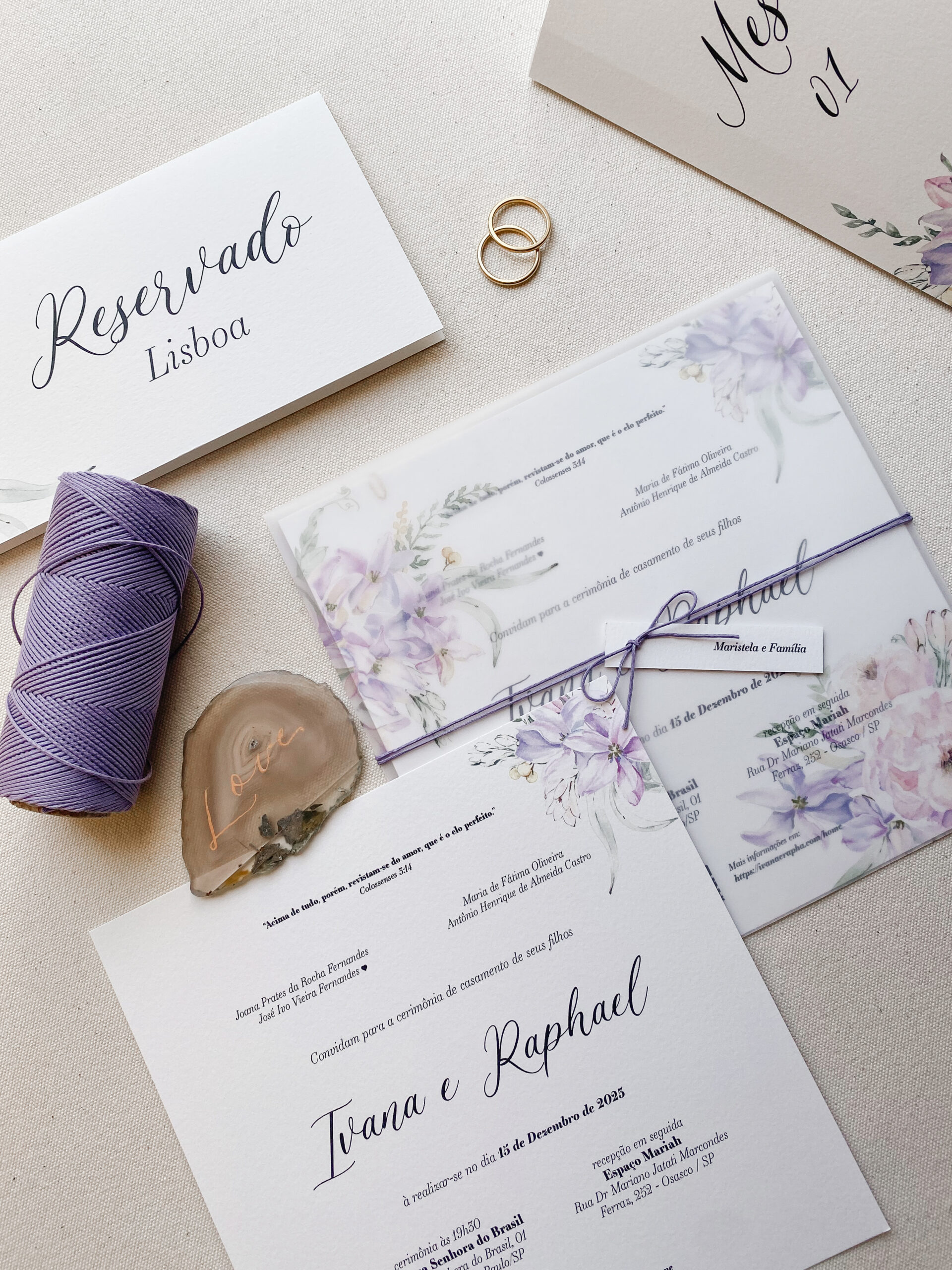 • Curadoria de identidade visual com florais e fontes do nosso catálogo